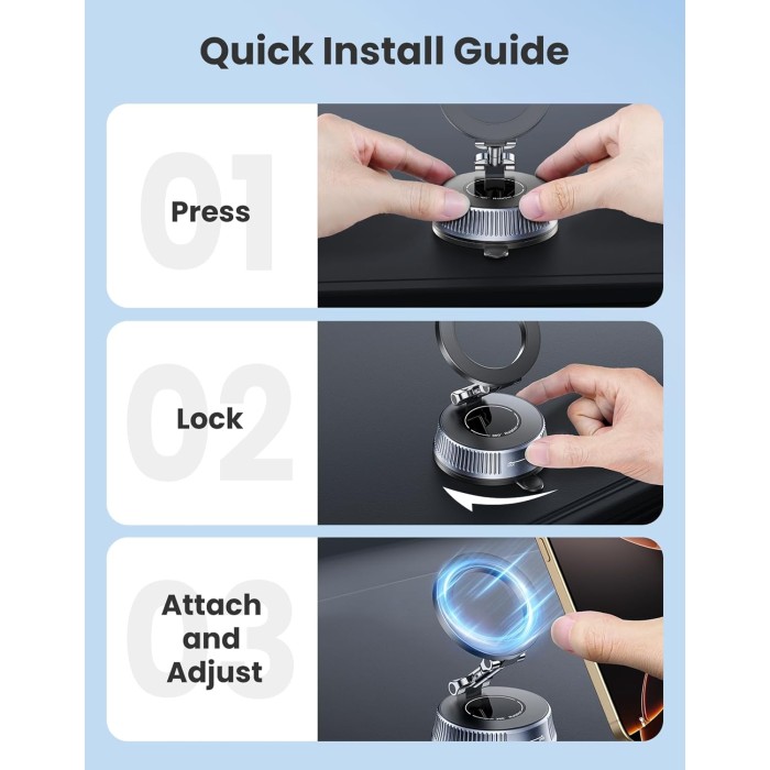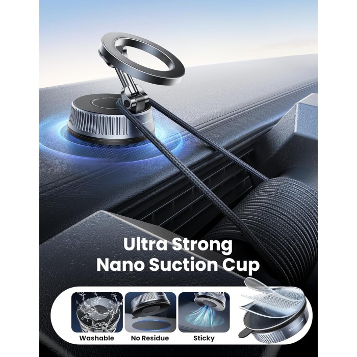 - [Superior Suction & Stable Hold] Equipped with an upgraded 4-layer nano-gel suction base and rotary vacuum-seal technology, this phone holder for your car delivers superior grip. Simply twist the dial to lock it securely on flat surfaces. The powerful vacuum suction cup stays firmly in place even in extreme temperatures (-4°F to 180°F). Its washable design restores suction power, ensuring long-lasting reliability and a rock-solid hold for every journey.