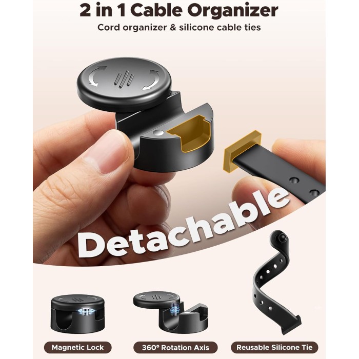 - 360° Side-slide Opening & Upgraded Magnetic Lock: Unlike other wire clips, EOIWUY combines enhanced magnetic locking and 360° side-slide opening design with a super-sticky acrylic adhesive pad. This ensures your cables stay firmly in place, even under strong pulling forces, and won't pop out easily. You can smoothly extract the desired cable at will