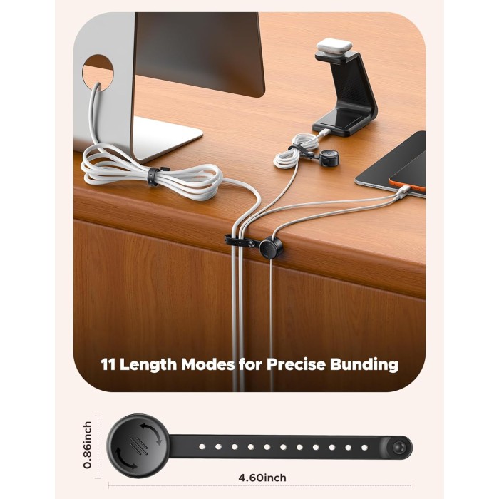 - 11-hole Adjustable Silicone Cable Ties: The soft and reusable silicone cable ties feature 11 buttonholes and can bundle cables with a diameter of up to 1.18 inches. Multiple hole options ensure a tight fit without damaging your cables or leaving marks. Whether used in combination or separately, they are perfect for bundling charging cables, headphone cables, USB cables, etc. Bid farewell to cable-winding troubles