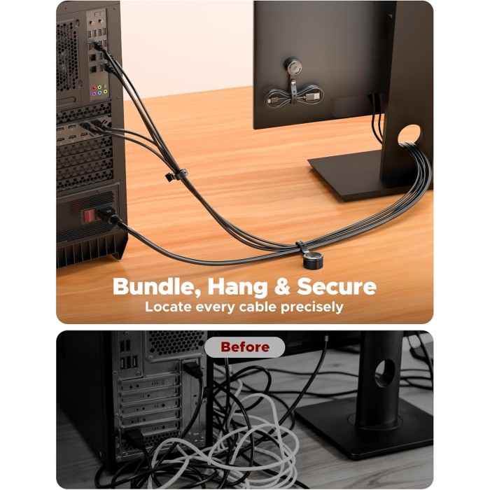 - Einzigartiges 2-in-1-Design: Der Kabelorganizer kann mehrere Kabel gleichzeitig bündeln und fixieren. Er lässt sich zudem in einzelne Kabelschellen aufteilen – für die Nutzung mit einzelnen Kabeln – oder als Silikon Kabelbinder für Ladegeräte-Kabel, Kopfhörerkabel, USB-Kabel usw. dienen. Verabschieden Sie sich von verworrenen Kabeln, decken Sie Ihre Bedürfnisse unter verschiedenen Nutzungsszenarien ab und genießen Sie einen sauberen, geordneten Aufbewahrungsbereich.