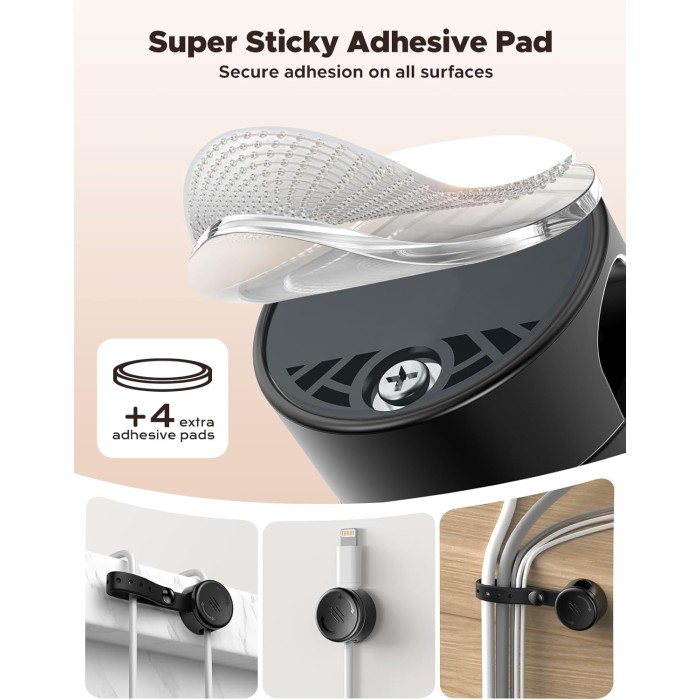 - Ultrahohe Haftfestigkeit & Keine Rückstände: Mit einem leistungsstärkeren Acrylkleber haftet unser Cable Organizer fest an fast jeder glatten, sauberen Oberfläche – wie Holzschreibtischen, Glas, Fliesen usw. Bei Entfernung beschädigt er weder Ihren Schreibtisch noch die Wand und hinterlässt keine Rückstände. Die Verpackung enthält zudem 4 Ersatzklebefolien, damit Sie den Kabel-management leicht wiederverwenden können.