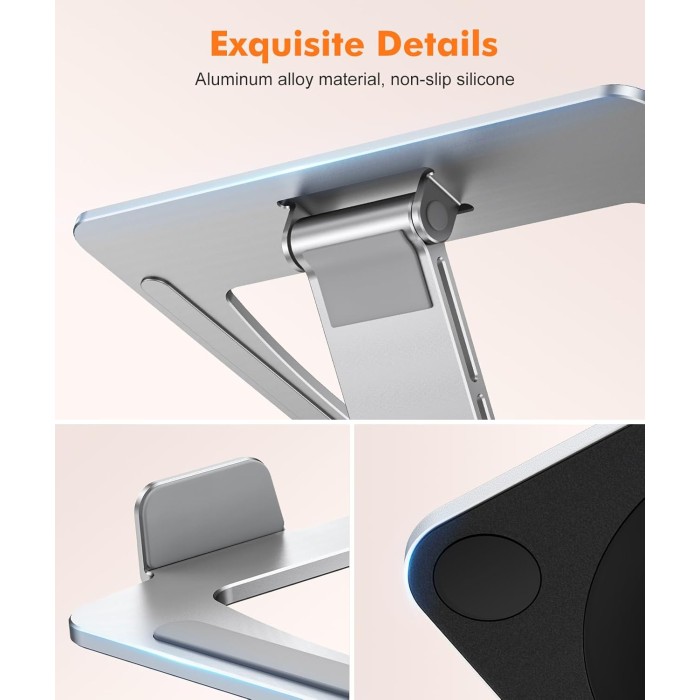 - [Ergonomic Health Benefits] Prioritize your well-being and bid farewell to discomfort. The laptop stands meticulously adjustable design adhere to ergonomic principles, empowering you to customize the perfect viewing angle and height, promoting a healthy posture and alleviating strain on your back and neck.